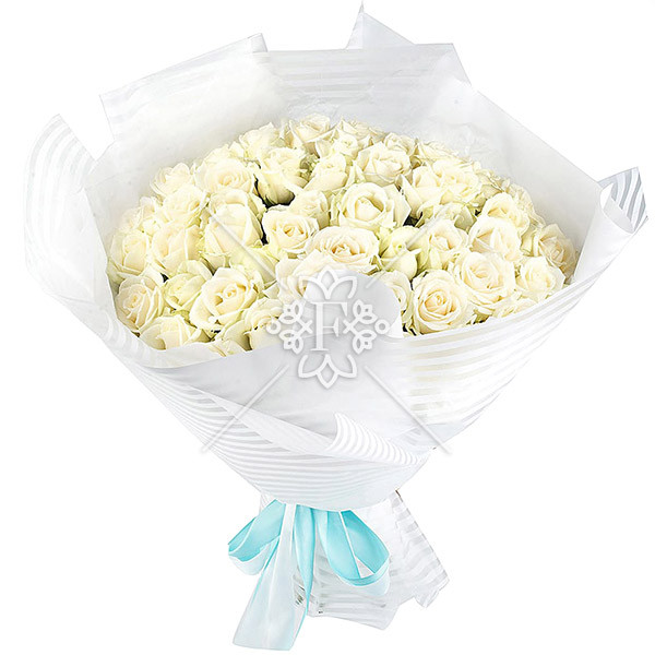 роза белая - 51 шт., упаковка, лента.